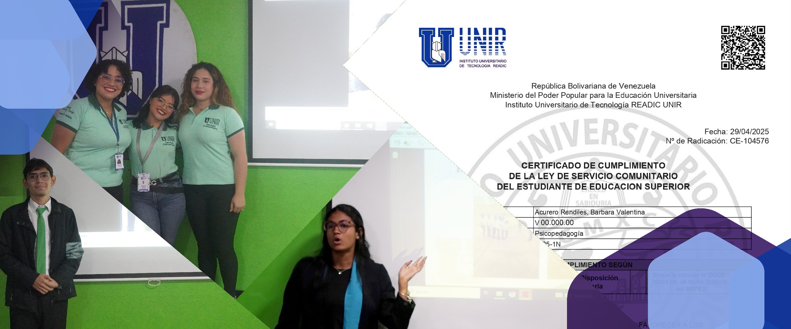 Los estudiantes del Instituto Universitario de Tecnología READIC UNIR ya pueden descargar su Acta de Servicio Comunitario desde el Portal Estudiantil